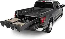 DECKED builds truck bed drawer systems in Defiance, Ohio and St. George, Utah. These rugged storage units keep tools, camping gear, and sports equipment secure while leaving a flat, usable deck on top. Each drawer system supports up to 2,000 pounds on top, yet the drawers slide easily even when fully loaded.