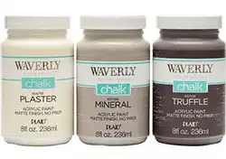 Waverly Inspirations offers a stylish line of chalk and matte finish paints made in the USA, crafted in Georgia by Plaid Enterprises. Known for its smooth coverage and trendy color palette, Waverly is especially popular with DIY home décor enthusiasts who want affordable, dependable paints for furniture makeovers and craft projects.